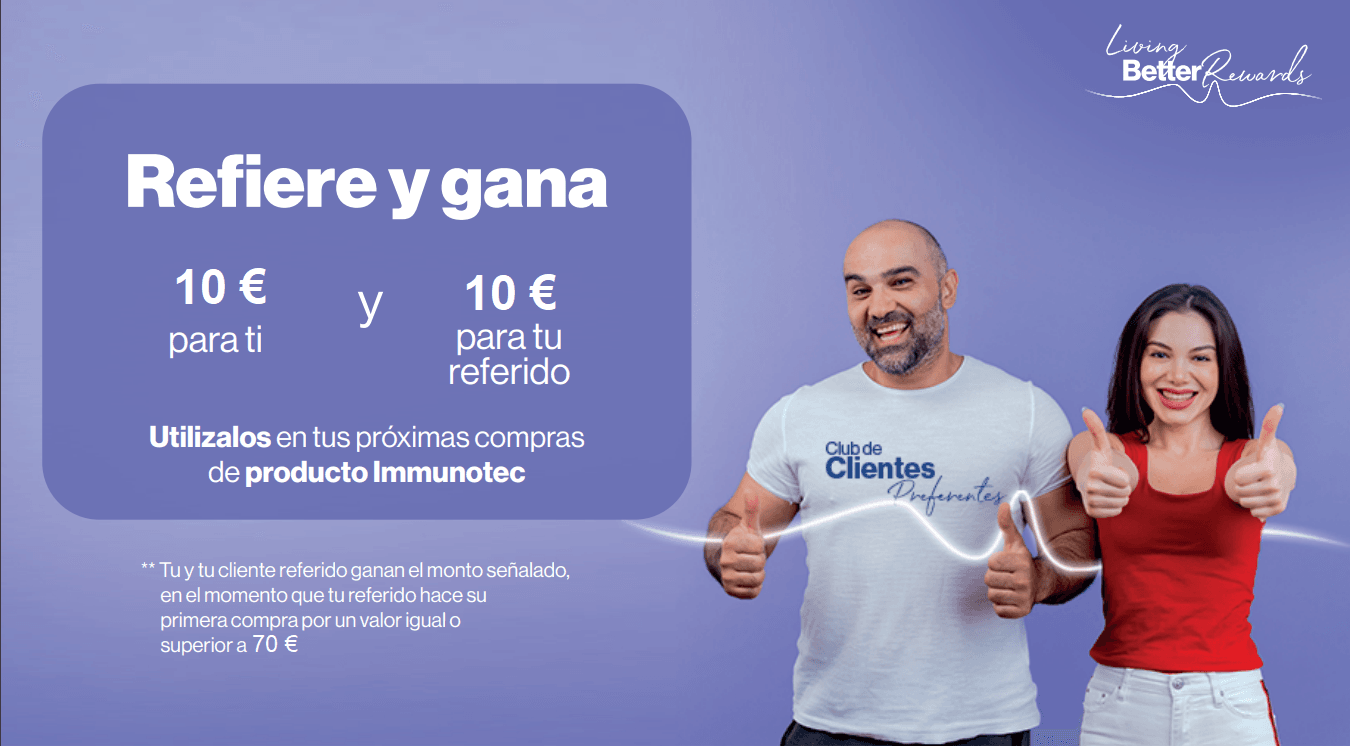 Sí, Immunotec te regala 20 € en membership rewards por cada 200 de compra. Puedes acumularlos y usarlos como tú quieras*.